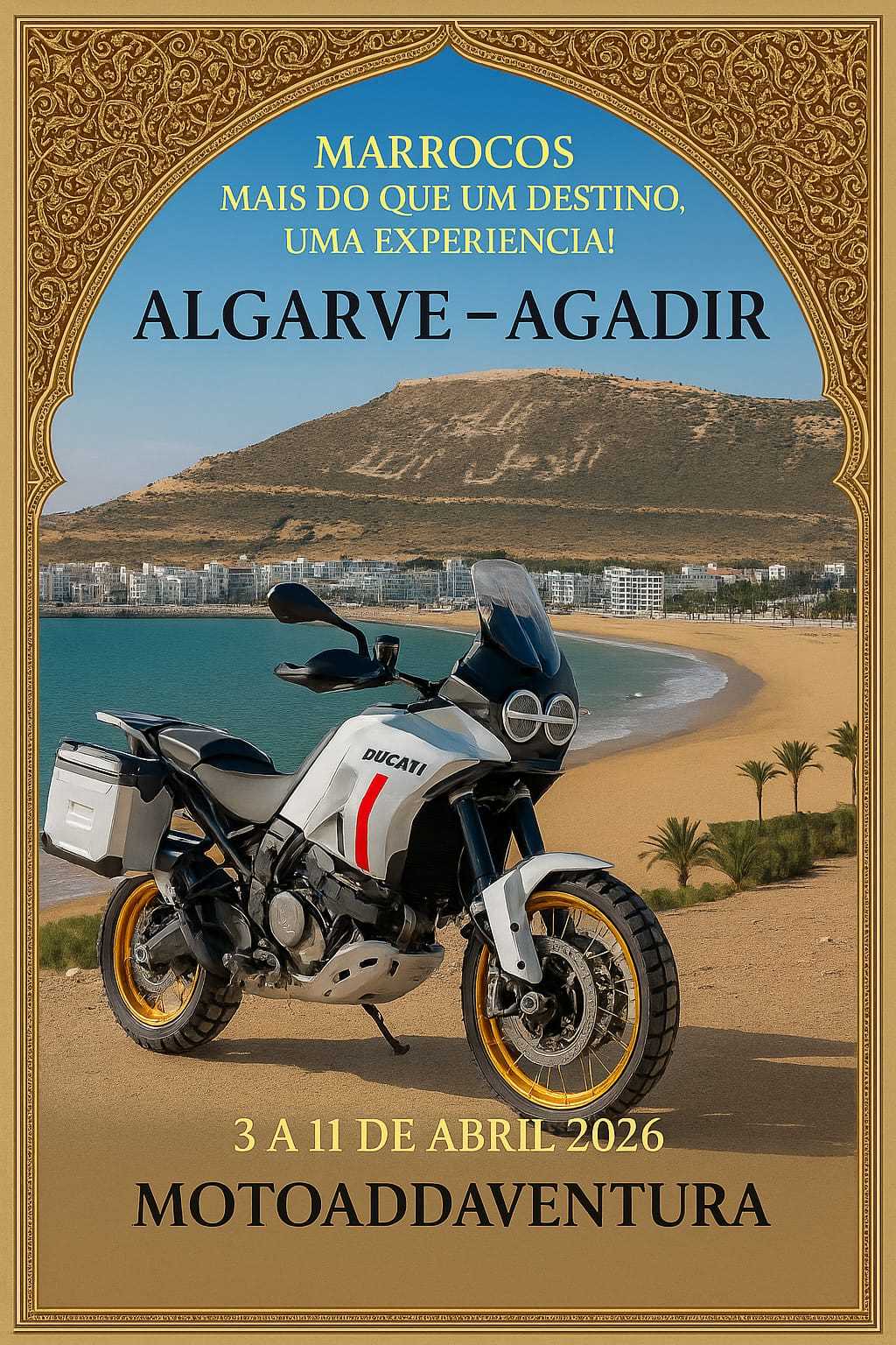 Tour de Moto On-Road em Marrocos: Costa Atlântica, Paradise Valley, Atlas, Deserto e Mediterrâneo. Este é o tour de moto on-road em Marrocos que combina tudo: oceano, montanhas, deserto e o misticismo do Mediterrâneo. Uma travessia completa para quem procura desafio, aventura e paisagens inesquecíveis.